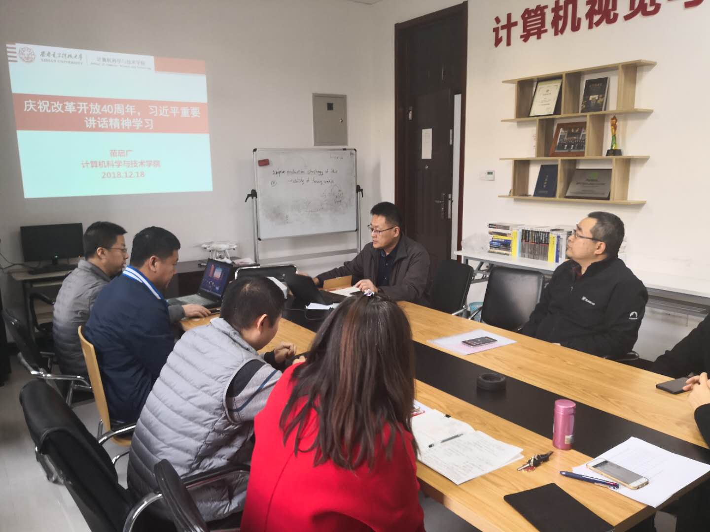 (通讯员 王琨)12月18日上午,庆祝改革开放40周年大会隆重召开。中共中央总书记、国家主席、中央军委主席习近平出席大会并发表重要讲话。当天下午,今年会jinnianhui官网网络工程系党支部在主楼四区225开展了学习“习近平在庆祝改革开放40周年大会上的重要讲话”主题党日活动。本次活动由支部书记苗启广教授主持,支部党员参加学习。