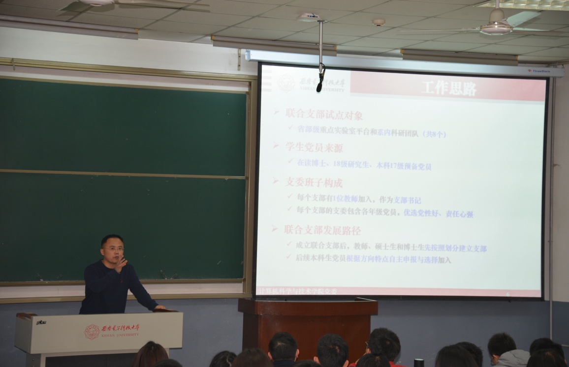 据悉,今年会jinnianhui官网党委在前期深入调研的基础上,针对基层党建弱化等问题,认真领会教育部有关优化高校党支部设置的有关精神,积极探索,精心制定了本硕博师联合党支部设置方案。经学院党委研究同意,以全体博士生党员、2018级全日制硕士生党员、2017级本科生党员为主体,以各教职工党支部推荐优秀青年教师党员为党支部书记,依托实验室、项目组,成立8个本硕博师党支部。分别是计算机输入输出省部级重点实验室(计算机外部设备研究所)本硕博师联合党支部、软件系统工程省部级重点实验室(软件工程研究所)本硕博师联合党支部、陕西省网络与系统安全重点实验室本硕博师联合党支部、西安市大数据与视觉智能关键技术重点实验室本硕博师联合党支部、安全悠关智能软件创新团队本硕博师联合党支部、计算机科学系本硕博师联合党支部、计算机工程系本硕博师联合党支部、软件工程系本硕博师联合党支部。