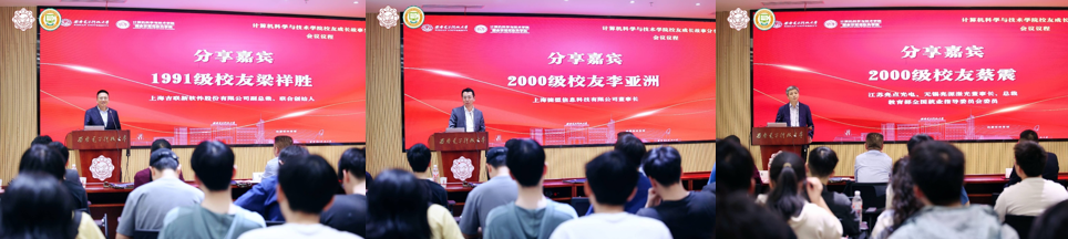 1982级校友施水才作了题为《科研成果产业化探索》专题报告。施水才从数智时代科研工作面临的挑战、科研成果产业化的两个核心、科研人员参与创业的四种形式、科学家创业的五个要点等方面分享了他在科研成果产业化的探索感悟,同时分享了对校企合作新模式的思考。1999级校友袁进辉作了题为《发挥西电计算机人才优势,抓住AI技术革命时代机遇》专题报告。袁进辉从硅基流动、OneFlow的创始经验出发,对AI技术变革发展进行讲解,建议充分发挥基础扎实、勤奋好学、团结互助的人才优势,敢想敢做,构建产学研生态,不缺席AI技术革命浪潮。1994级校友周恒作了题为《架构师之道》专题报告。周恒通过结绳记事、良渚织机等生动形象的描述,分享了系统发展的变革及架构师的工作能力及方法。2009级校友肖斌作了题为《重庆邮电大学校企合作情况分享》专题报告。肖斌从学校基本情况、校企合作领域与方式、校企合作单位、校企合作成效等方面介绍了重庆邮电大学在校企合作方面的情况与经验,为学院进一步推动校企合作提供了参考借鉴。