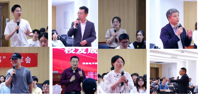 温绍杰校友通过“真假校友”的案例,分享担任深圳校友会秘书长期间的故事,强调校友资源的重要性,鼓励大家毕业后要积极融入当地校友会,加强校友间的沟通交流和资源共享,积极投身服务母校的具体行动,不断擦亮西电名片,做出“西电贡献”。周方通过讲述其从“技术岗”转“管理岗”的心路历程,勉励学弟学妹要将所学知识与业务相结合,学会与人沟通,不断拓展可迁移的学习能力。梁祥胜校友回忆90年代在西电上学时的场景,通过写信联系好友无意养成的良好文字功底让他受用终生;针对毕业后的发展,他辩证地分析了成家与立业之间的关系,希望学弟学妹保持终身学习的习惯,积极应对行业的需求和变化。李亚洲校友回顾曾经在华为的工作历练以及后来的创业故事,建议学弟学妹:一是做事要有破釜沉舟的“勇气”,要勇于担当;二是要学会“沟通”,多沟通多交流多汇报;三是要学会“抗压”,愈是在攻坚克难的压力期,愈要沉下心积极调整化解压力,稳中求进。蔡震校友通过分享自己的创业故事来解读“立”、“练”、“悟”三个人生关键字,勉励同学们要结合自身实际树立短期目标和长远目标,通过不断主动尝试、多思多悟,锤炼自己的显性知识和隐性技能。
