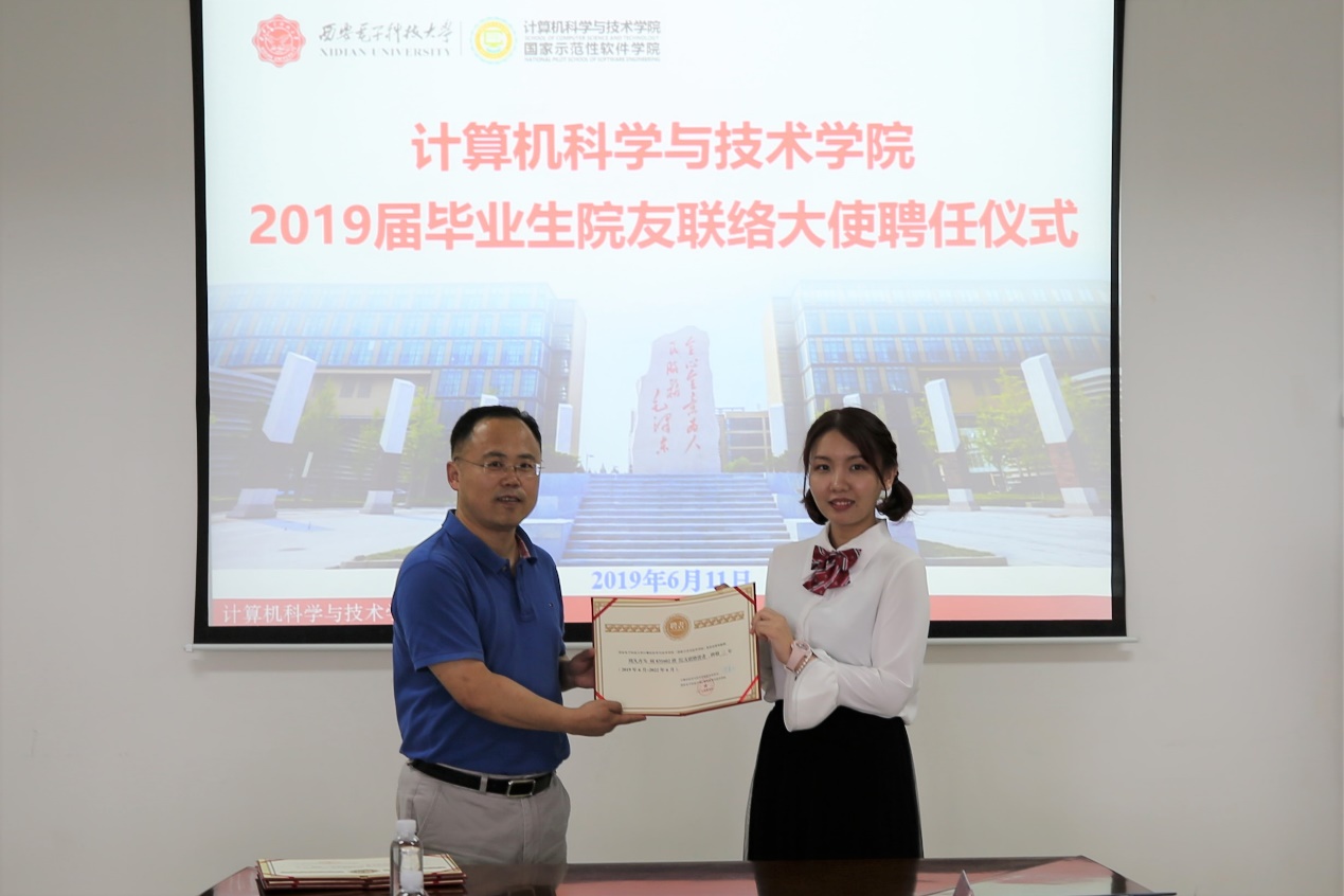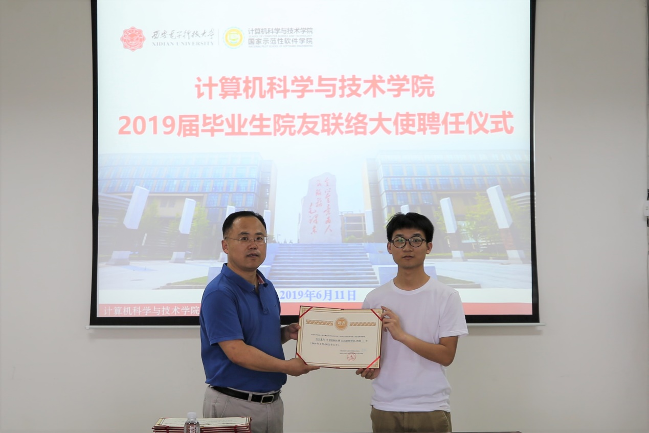 学院在2019届毕业生中共聘任联络大使31人,包括20名本科生、10名硕士研究生和1名博士研究生,实现了学院全部班级941名本科生、445名硕士研究生与15名博士研究生的全覆盖。毕业后,联络大使将成为院友会平台建设的重要力量,学院也会秉承终生服务院友的理念,持续为院友提供高质量优质服务,共同搭建好属于全体西电计算机人的精神家园。