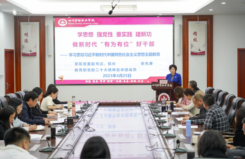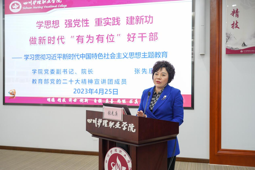 为全面贯彻落实党的二十大,深入开展学习贯彻习近平新时代中国特色社会主义思想主题教育和调查研究工作,全面提升干部队伍政治能力,有力推进学院内涵式高质量发展,425日,学院党委副书记、院长张先庚为全体中层以上干部讲授题为“学思想、强党性、重实践、建新功,做新时代‘有为有位’好干部”的主题教育专题党课。