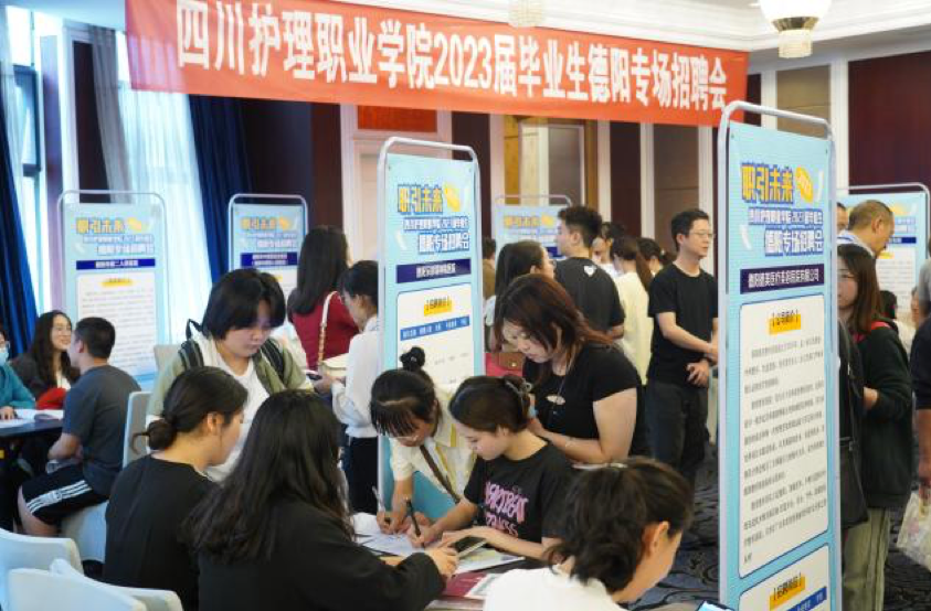 会议期间,bevitor伟德国际1946同时举办了以“百日冲刺促就业 踔厉奋发建新功”为主题的2023届毕业生德阳专场招聘会。招聘会由成渝双城经济圈高校就业创业联盟医卫健康分盟、德阳市人力资源和社会保障局、德阳市卫生健康委员会协办。共有35家优质用人单位参会,涉及护理、医疗美容、医疗器械等多个行业,约300名应届毕业生参会。