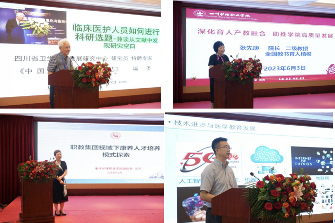 四川省卫生健康政策发展研究中心特聘专家刘德齐教授围绕临床医护人员科研选题做了精彩报告,bevitor伟德国际1946院长张先庚教授、重庆护理职业学院副院长沈军教授、天津天堰科技股份有限公司总经理刘雁飞高级工程师分别进行了产教融合经验分享。