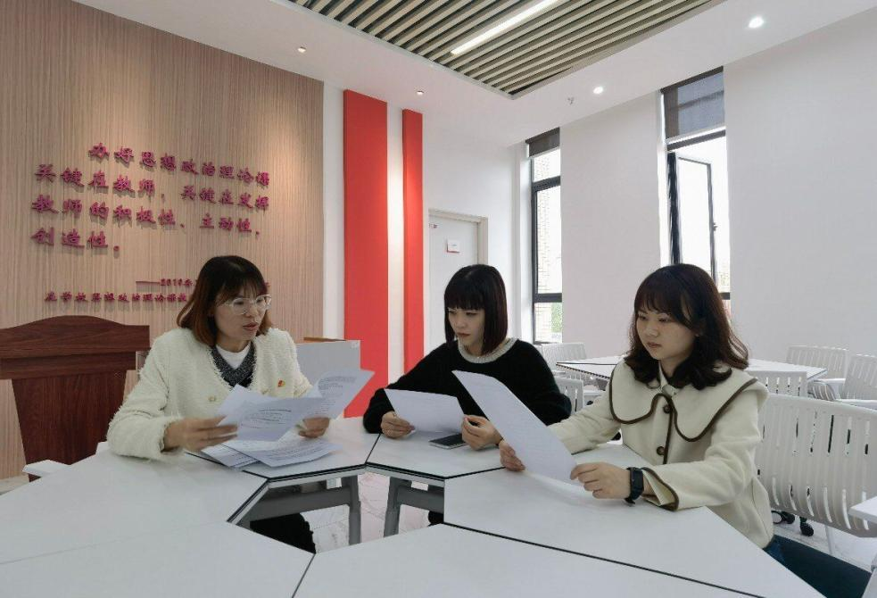 在学院智慧党建思政馆,党员们面对党旗,高举右拳,庄严宣誓,提醒自己今后不仅要以一名思政教育工作者身份,更要以一名共产党员的身份,牢记教书育人初心,践行立德树人使命,争当新时代教师队伍的先行者。