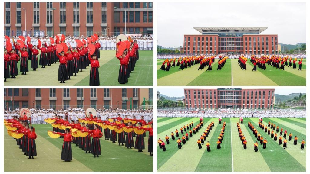 鼓声阵阵打出青春活力的舞蹈《红昭》,展现出了学子们奋勇争先的矢志决心和昂扬奋进的青春风采。“初心照亮新征程”千名学生集体舞表演,不忘初心奏响青春旋律,气势恢宏华彩乐章。