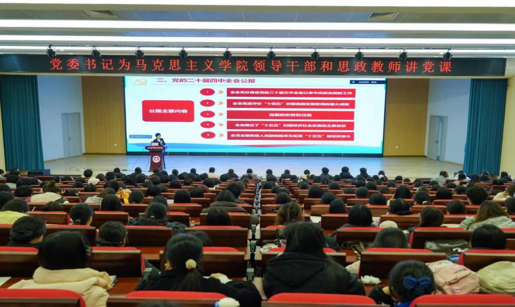 12月11日,学校党委书记张先庚教授在德阳校区以《学习党的二十届四中全会精神 坚定理想信念 勇担卫生健康重任》为题,为马克思主义学院全体思政课教师、青年马克思主义学社(以下简称青马社)学生600余人讲授了一堂深刻而富有感召力的专题党课。本次党课旨在深入学习贯彻党的二十届四中全会精神,引导广大师生准确把握国家发展大局与行业前进方向,进一步筑牢信仰之基,强化责任担当,为推动卫生健康事业高质量发展凝聚智慧与力量。