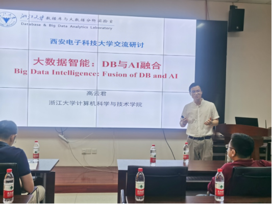 高云君教授做了题为《DB与AI融合(Big Data Intelligence: Fusion of DB and AI)》的报告。在报告中,高教授深入分析了DB与AI各自的优势与不足之处:DB在存储于处理能力方面有优势,但深度挖掘能力不足;AI在建模与学习能力方面具有优势,但存在性能瓶颈。因此,数据库技术和人工智能方法融合成为了当前的学术前沿,以形成大数据智能理论与方法。他进一步给出大数据智能的主要内容:1)DB驱动的AI(DB4AI),以利用数据库技术优化人工智能方法,2)AI赋能的DB(AI4DB),以利用人工智能方法使得数据库技术更智能。报告最后,高教授与现场师生热烈互动,探讨学术问题。