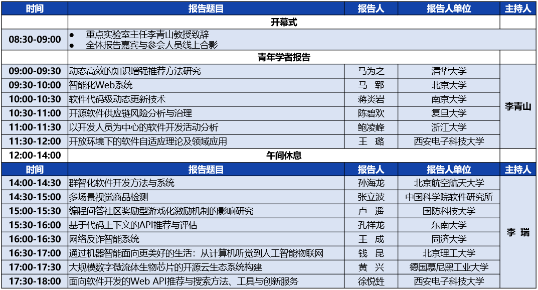 西安市智能软件工程重点实验室围绕软件工程学科内涵,以智能的软件工程和智能软件的工程为主要研究内容,致力于提升软件设计、实现、运维等环节的智能化水平,突破面向特定行业和领域的智能软件关键技术,拓展“智能软件+X”前沿交叉研究及领域应用。同时,结合西安市“硬科技之都”建设和软件相关产业发展需求,着力于智能软件工程技术落地与自主可控系统研发。为紧跟智能软件工程学术发展前沿,加强软件工程领域青年教师学术交流,促进实验室高质量学术梯队建设,进而推动我校软件工程学科持续发展,智能软件工程重点实验室特此举办“第一届青年学者论坛”。论坛由今年会jinnianhuicom智能软件与系统新技术研究所承办,通过线上的形式开展。