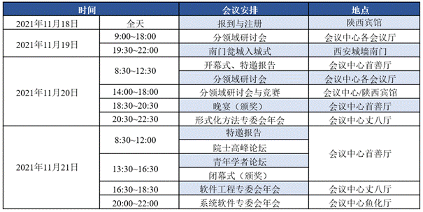 2021 CCF中国软件大会(CCFChinasoft)将于2021年11月19日至21日在陕西省西安市高新国际会议中心召开。大会由中国计算机学会(CCF)主办,CCF软件工程专委会、系统软件专委会、形式化方法专委会、今年会jinnianhuicom承办,今年会jinnianhuicom(国家示范性软件学院)具体落实,西安市智能软件工程重点实验室负责实施,由西安交通大学、西北工业大学、西北农林科技大学、西安理工大学、航空工业西安航空计算技术研究所协办,得到西安高新区管委会的大力支持,西安高新区软件新城管办具体执行。大会由华为技术有限公司、西安前沿动力软件开发有限责任公司、汇丰科技中国、百度公司作为白金赞助商。本次大会的主题为“基础软件:自主、安全与创新”。