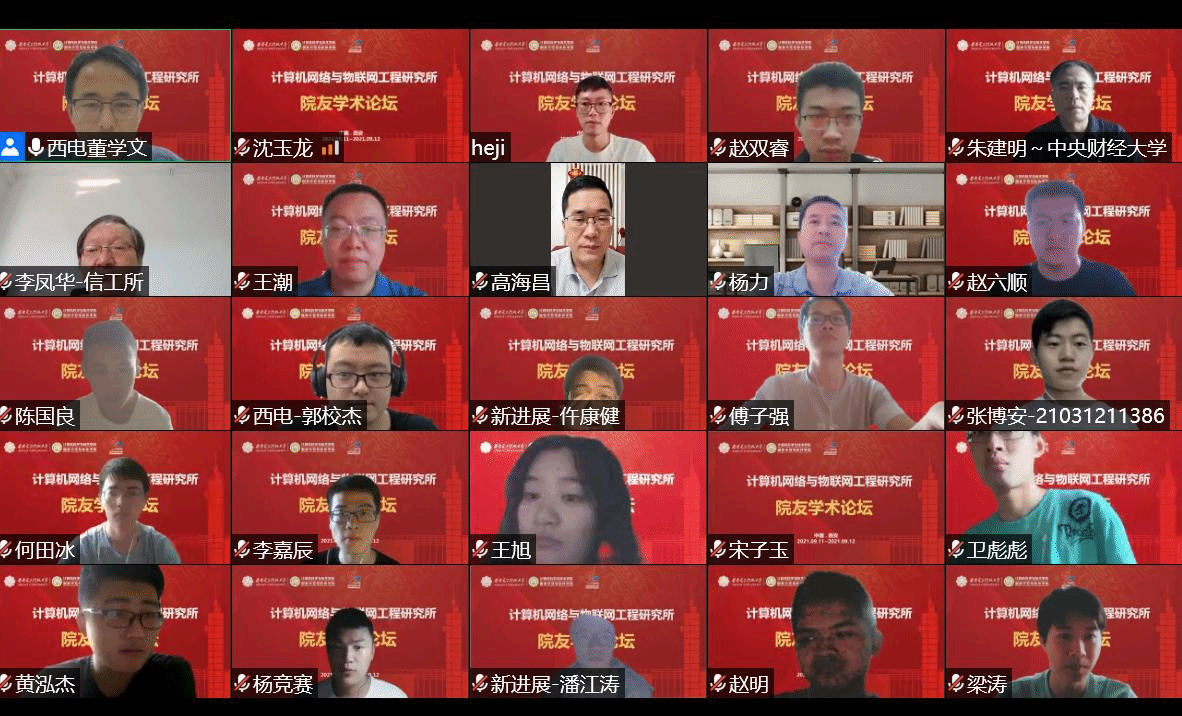 (通讯员 董学文)为迎接我校九十周年华诞,进一步增加院友与学院的联系,促进学术交流与合作,拓宽师生学术视野,扩大学院学术影响力,2021年9月11日至9月12日,我院举办了今年会jinnianhuicom计算机网络与物联网工程研究所院友学术论坛。本次论坛由陕西省网络与系统安全重点实验室主办,计算机网络与物联网工程研究所承办,以线上线下结合的形式开展。论坛围绕计算机网络安全领域的最新学术进展,邀请了中国科学院大学、西安交通大学、中央财经大学、上海大学、兰州理工大学、河南工业大学等国内计算机学科优势高校的网络与安全领域青年教师进行学术交流,并通过主题报告、交流沙龙的形式分享了智能计算机网络和安全领域的理论和技术新进展,加强了实验室学术前沿交流,扩大了我校计算机学科的知名度与影响力。论坛吸引了国内外计算机网络和安全领域相关师生和从业人员的广泛参加,论坛参与人次超500。