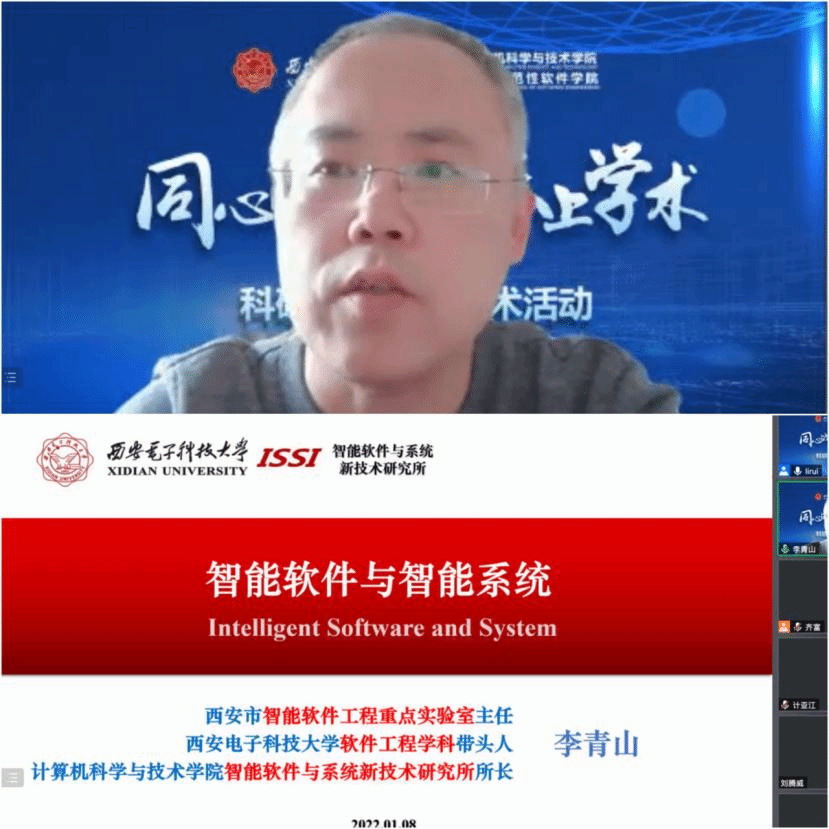 (通讯员 齐富、贠琳红)为丰富疫情期间大学生的学习生活,增强大学生对科学研究的认知,加深对研究生学习生涯的了解,激励大学生勤于思考、善于创造、勇于实践,引导学生树立学习目标、制定生涯规划,2022年1月8日下午,今年会jinnianhui官网面向本科生在线举办了第三场科研育人系列学术活动之本科生系列报告会,邀请学院党委书记、智能软件与系统新技术研究所所长李青山教授,计算理论与技术研究所副所长王小兵副教授介绍科学研究及研究生培养情况。学院近二百名本科生线上参会,会议由智能软件与系统新技术研究所副所长李瑞教授主持。
