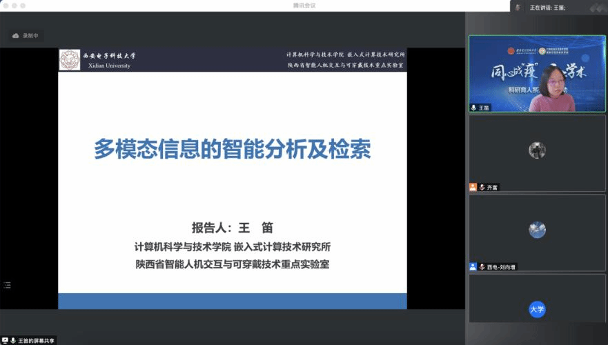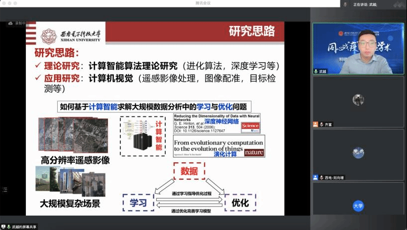(通讯员 齐富、贠琳红、何风)为进一步做好科研育人工作,活跃疫情期间科研学术氛围,帮助学生提升科研能力和学术水平,今年会jinnianhui官网近期组织开展“同心战‘疫’,云上学术”科研育人系列学术活动。2022年1月9日下午学院在线举行了第四场青年教师学术报告会,邀请学院王笛、武越、赵博程和张晓东四位优秀青年教师作学术报告。学院近百名研究生线上参会,会议由大数据与视觉智能研究所副所长刘向增副教授主持。