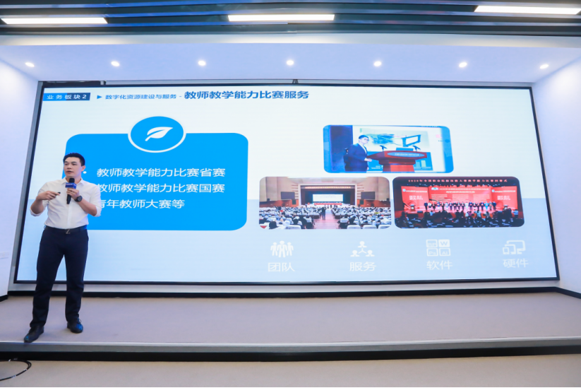 两家代表企业先后发布了企业技术需求的“揭榜挂帅”。广州盈可视电子科技有限公司分享了教育数字化与智能化融合解决方案,发布了面向教育领域应用的AI算法、基于考试和成绩管理的区块链技术、元宇宙相关的XR技术、数字孪生技术系列成果对接需求。广州特控电子实业有限公司发布了核心研发能力人才、产学研合作、工业软件领域成果对接的需求。