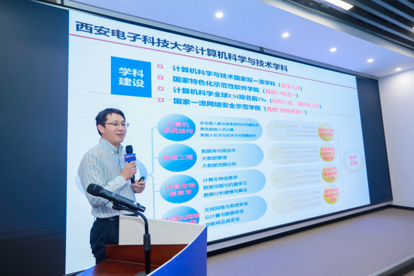 随后,沈玉龙教授与参会企业共同分享了《计算机技术前沿发展趋势》主题报告,并进行了开放应用场景的“揭榜挂帅”,从计算机科学与技术和软件工程两大学科,详细讲解了西电今年会jinnianhui官网科学研究内容和技术应用场景。