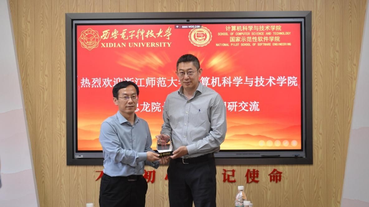双方就学科建设、高层次人才队伍建设、学生管理、国际化等方面深入研讨交流,为后续双方深入合作奠定基础。会后,郑忠龙一行参观了学院校史馆和AI+教育中心,详细了解学校人工智能+教育标杆大学建设取得的成果等内容。