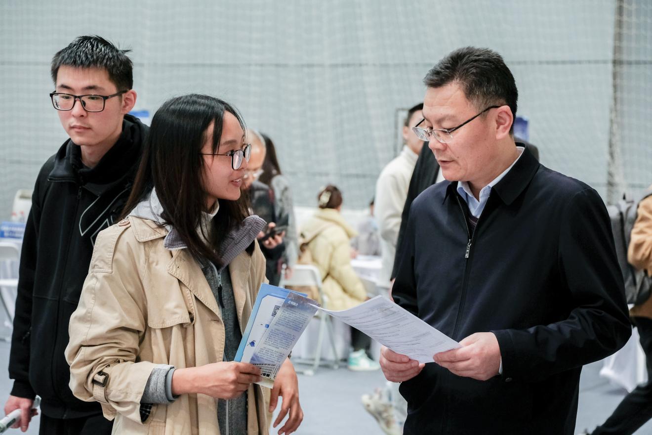双选会期间,学校、学院领导来到现场,与参会单位和求职毕业生亲切交谈,了解同学们的就业进展,听取用人单位的意见和建议。